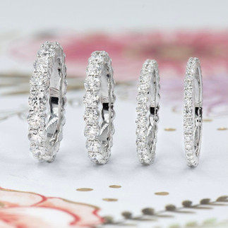 These rings have diamonds that wrap all the way around the entire band. They are big on sparkle and symbolize the forever quality of your love.