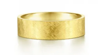 Classic bands are made of traditional metals. Think gold, white gold, and platinum. They can even boast mix metals and often utilize unique finishes such as etched, grooved, or “coin edge” details.